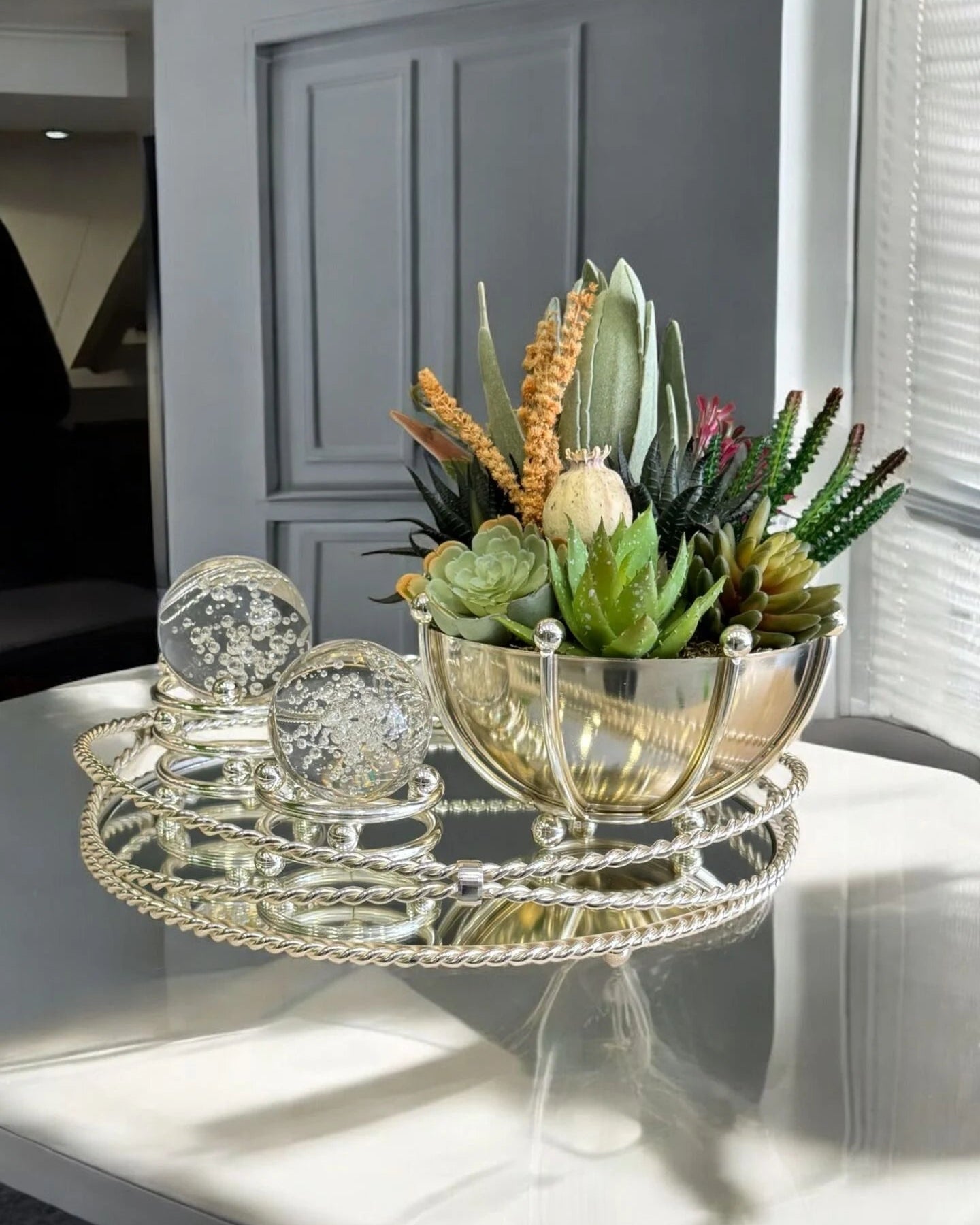 Dekoratif Cam Meyvelik Sunumluk Servis Gümüş