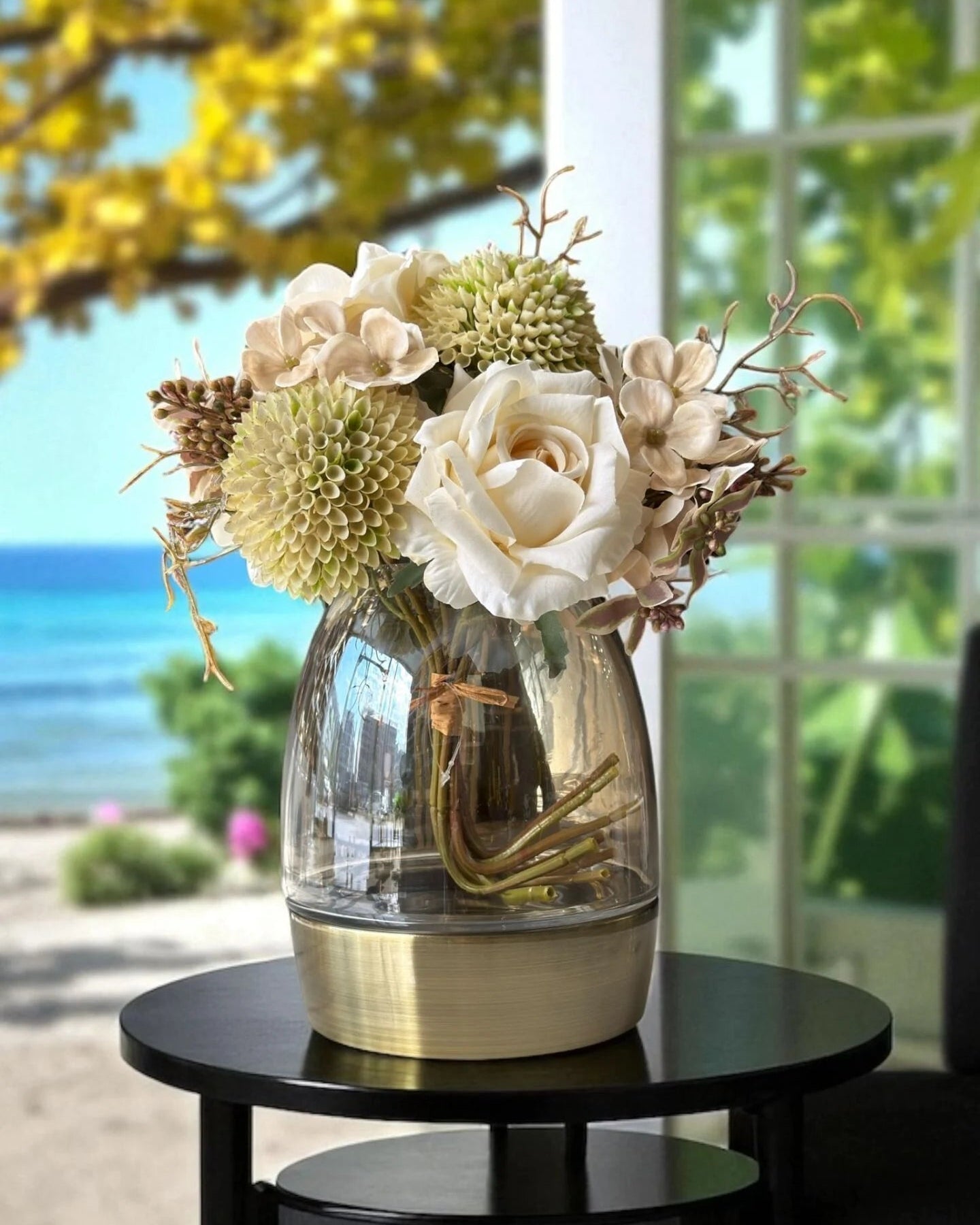 Metal Cam Vazo ve 2li Buket Manolya Aranjmanı