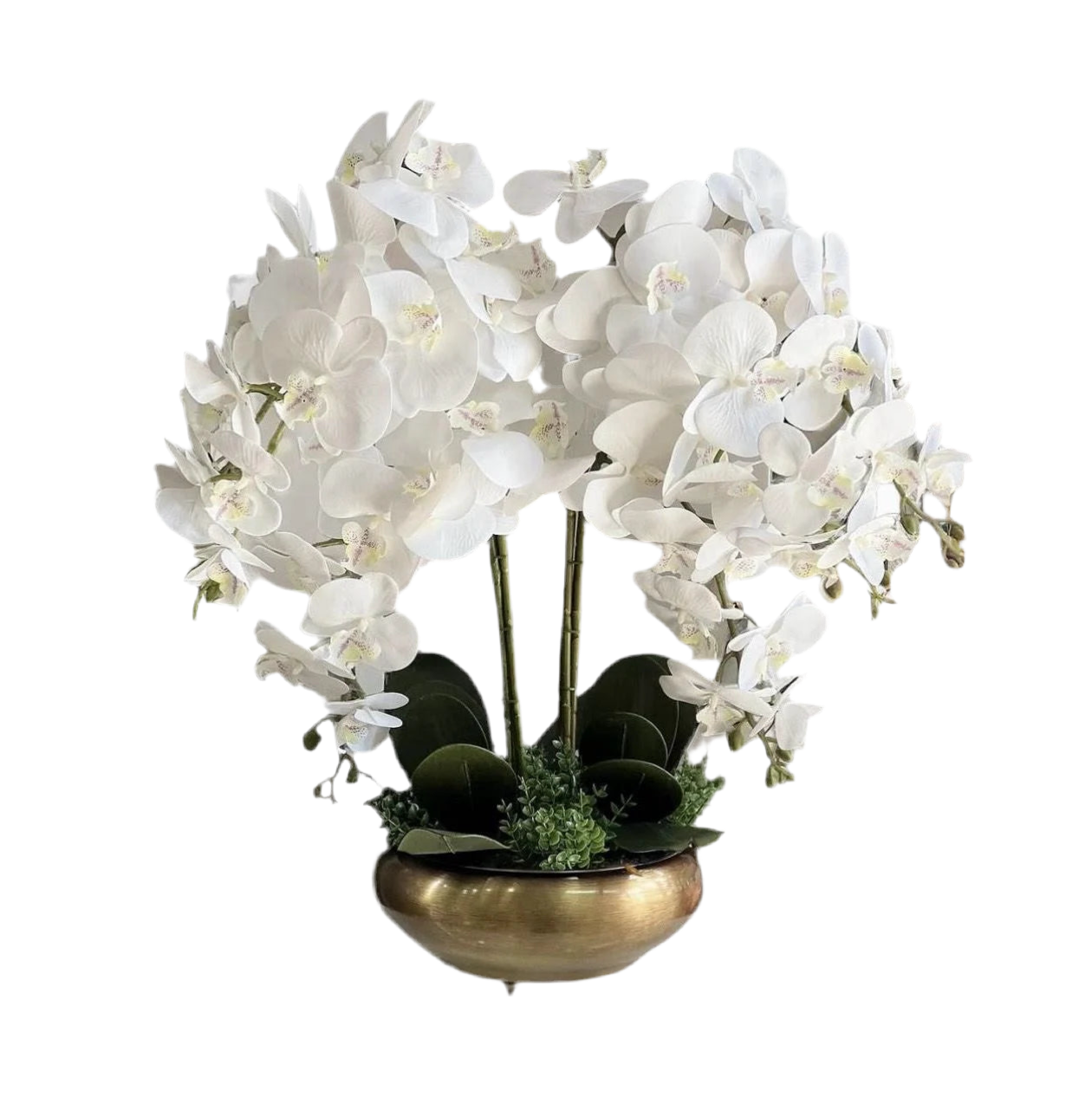 6 Dallı Yapay Orkide Aranjmanı – Eskitme Saksılı