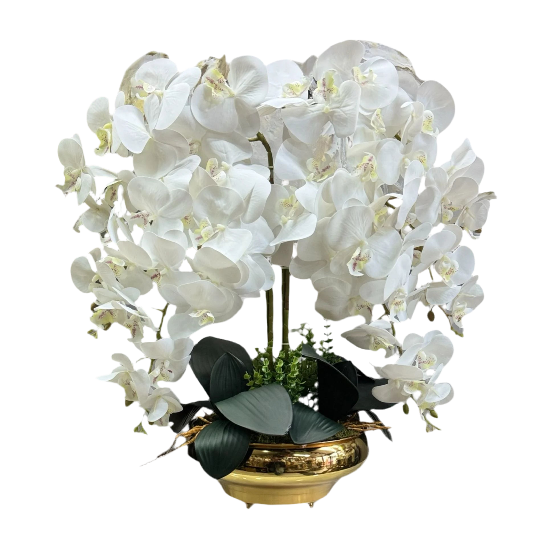 6 Dallı Yapay Orkide Aranjmanı – Gold Saksılı