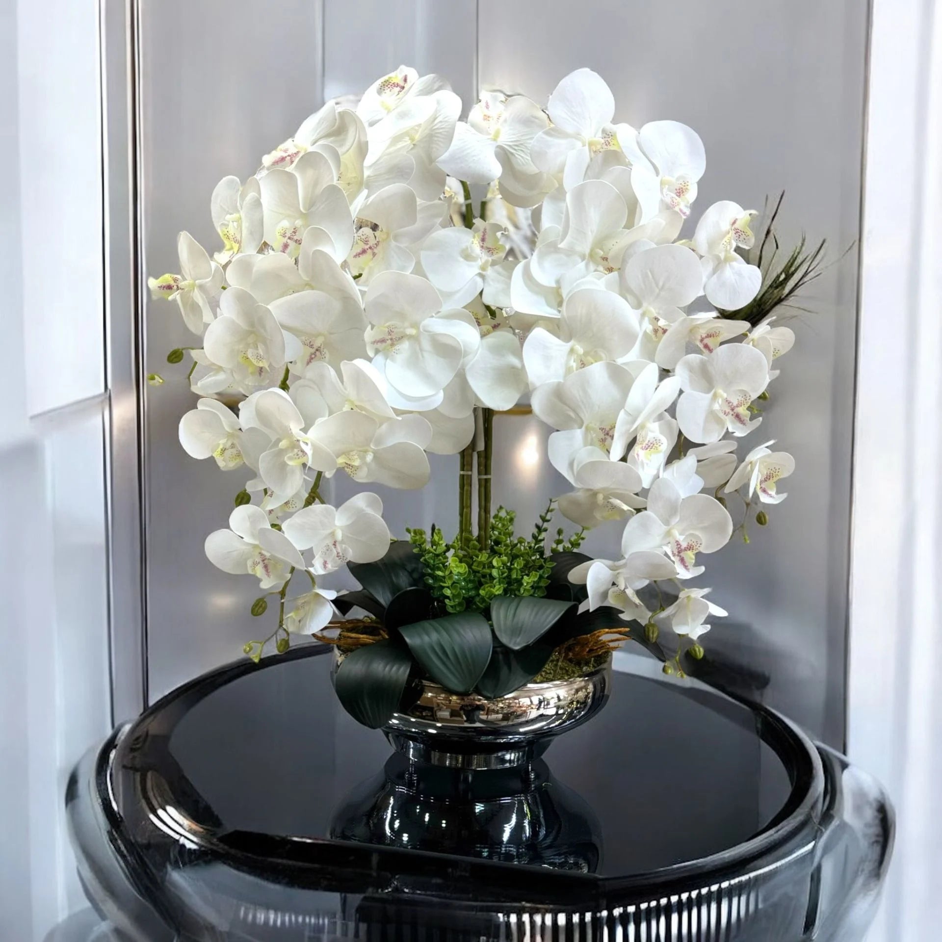 6 Dallı Yapay Orkide Aranjmanı – Gümüş Saksılı