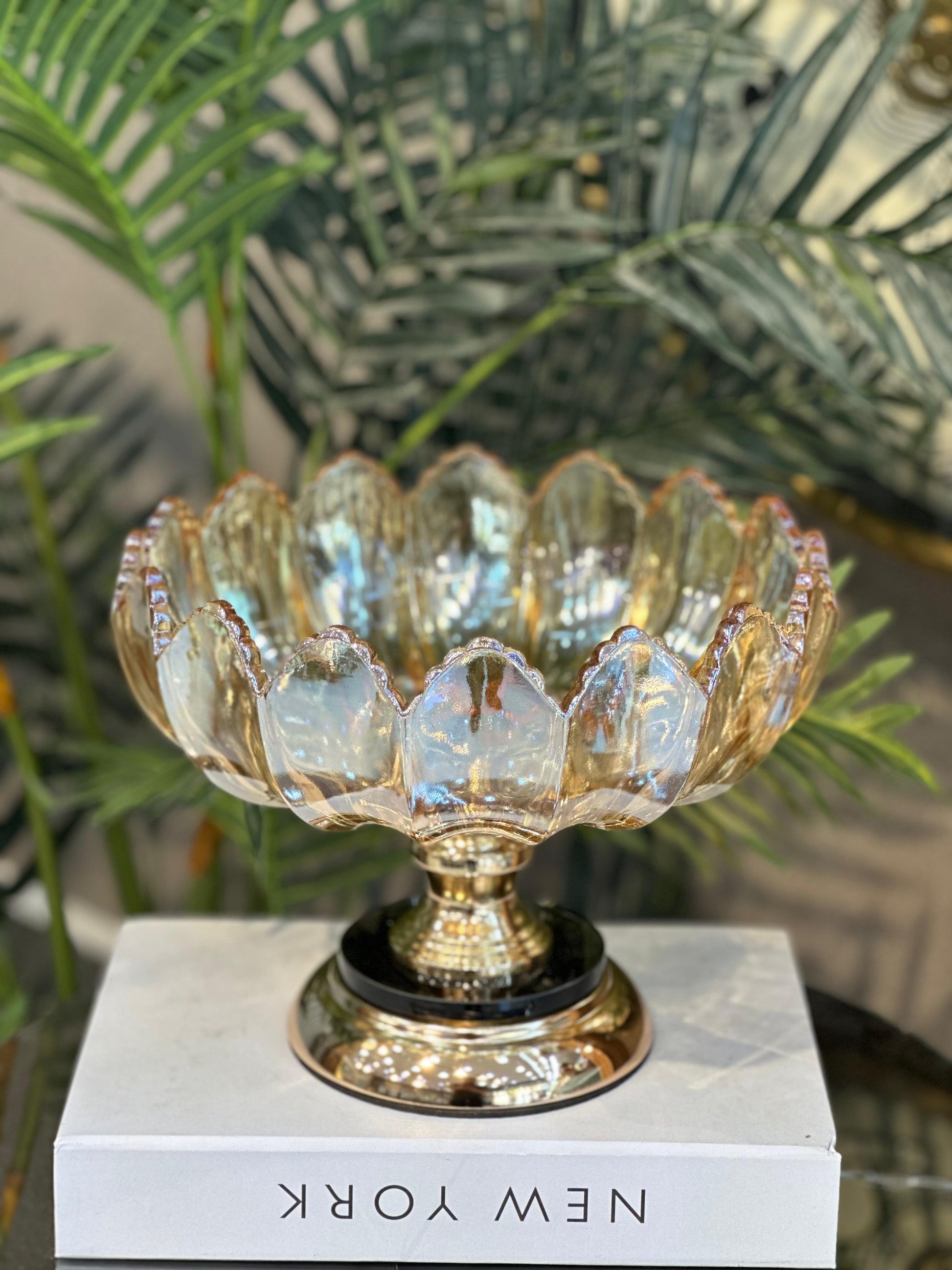 Dekoratif Cam Meyvelik Sunumluk Servis Gold