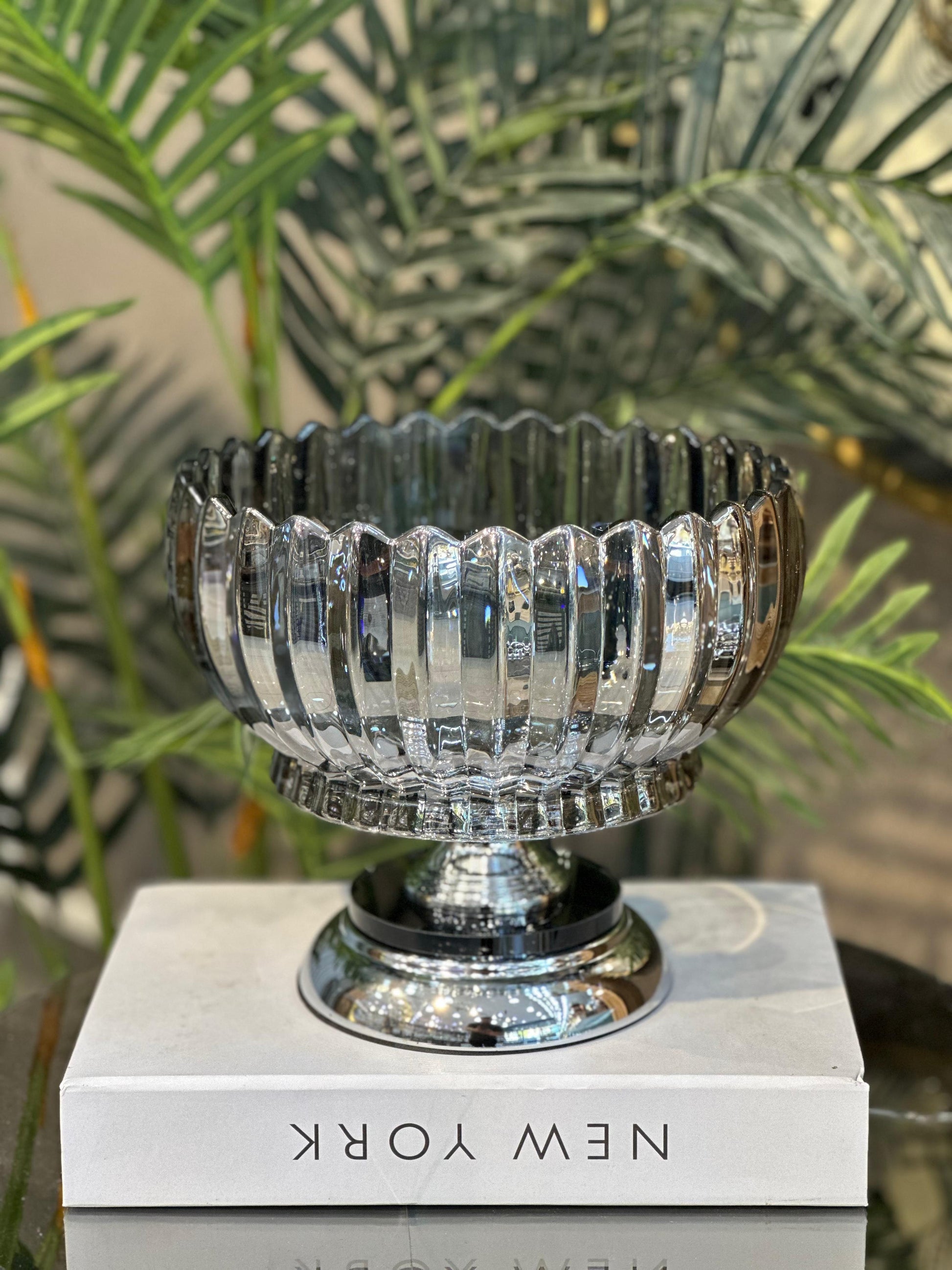 Dekoratif Cam Meyvelik Sunumluk Servis Gümüş