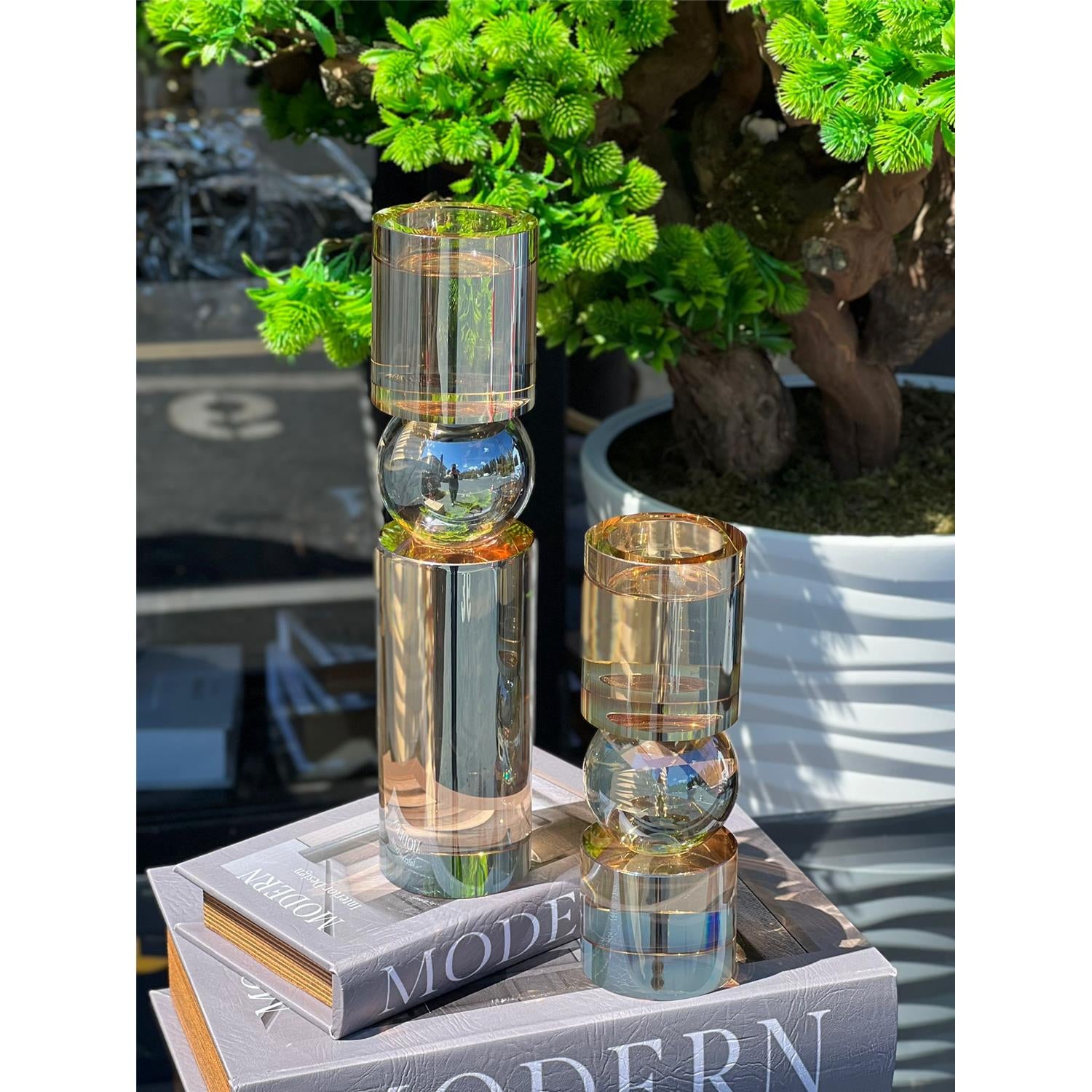 Kristal Şamdan Seti 2li Gold