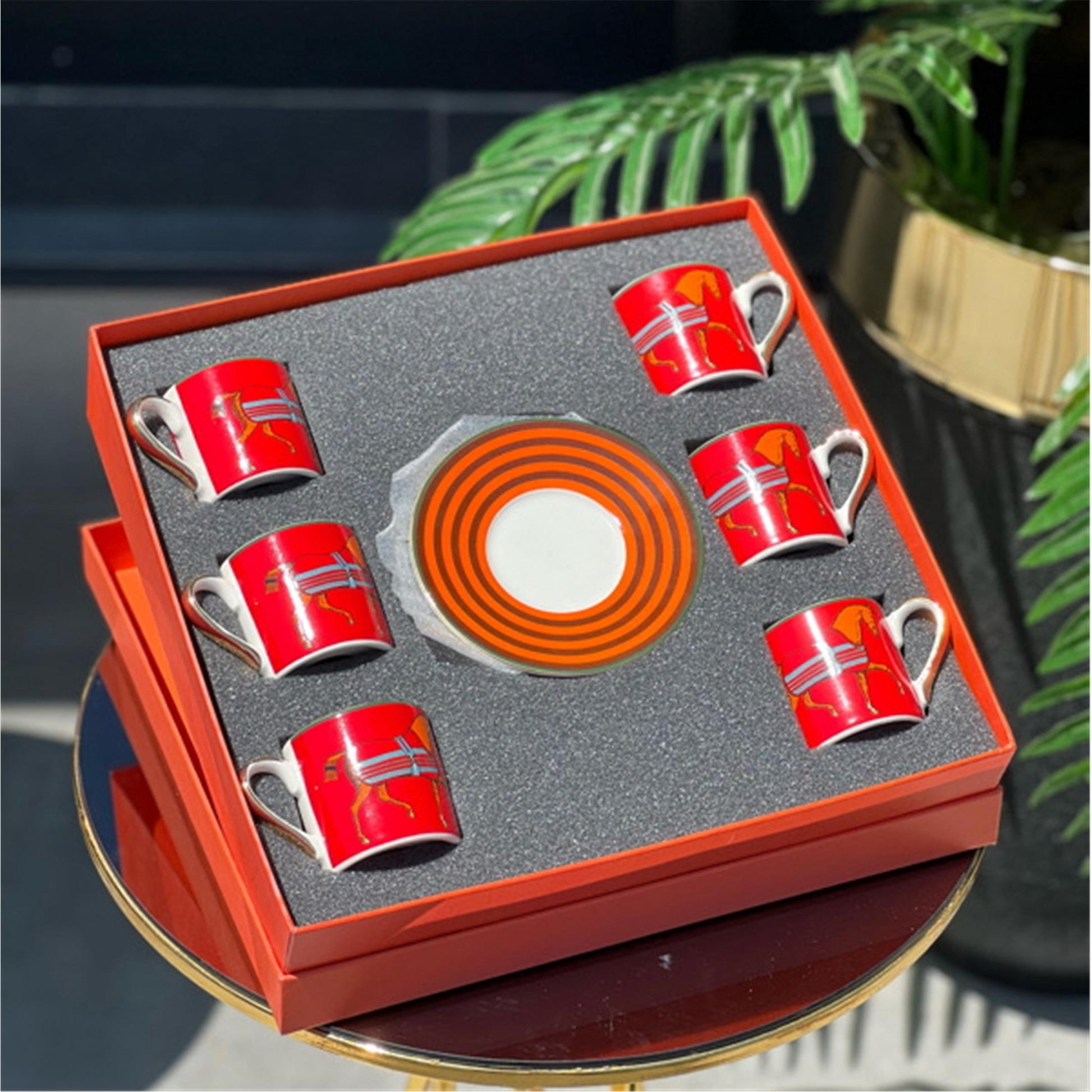 Porselen 6lı Fincan Seti Kırmızı At Model