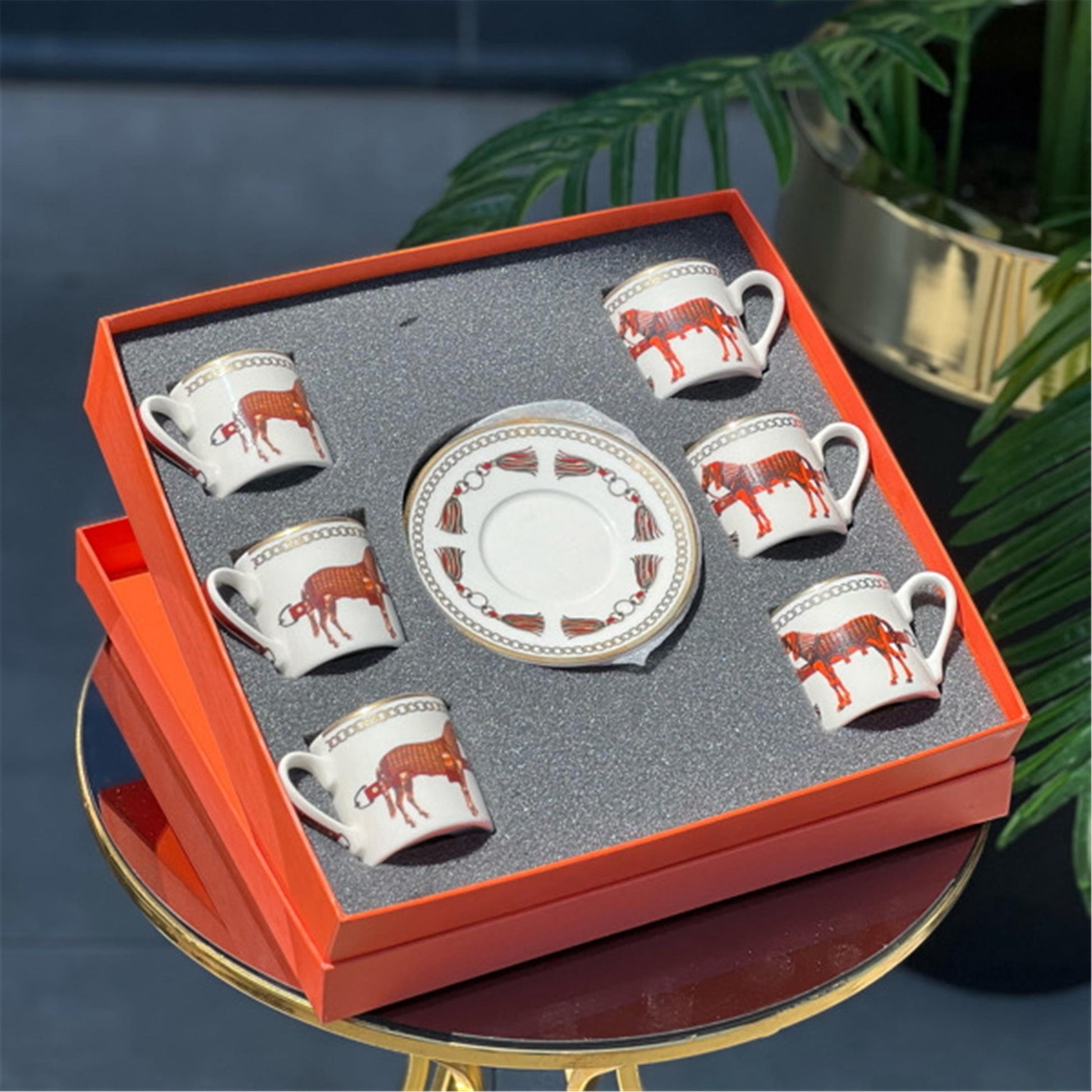 Porselen 6lı Fincan Seti Kızıl Truva Model