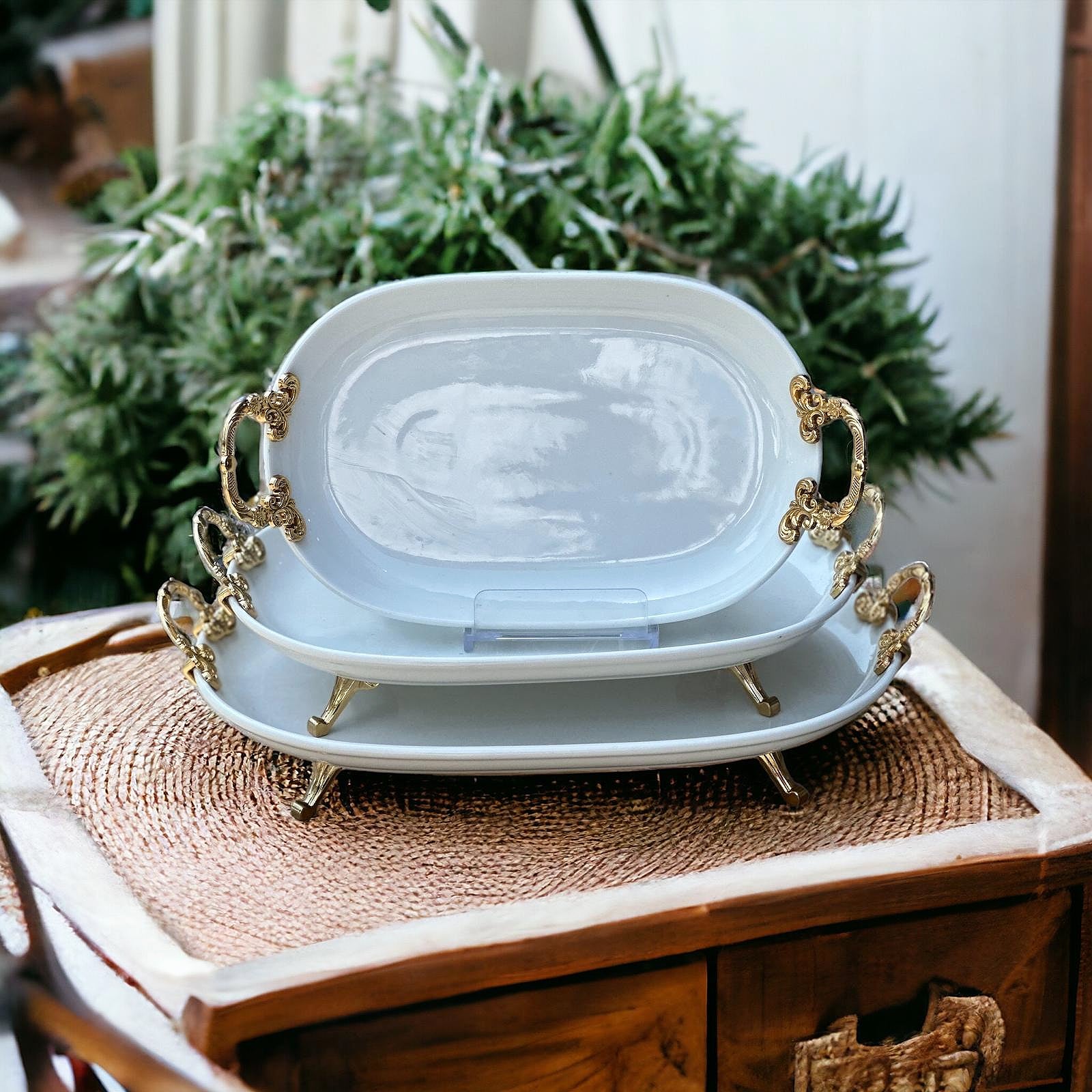 Bu 3 parça gold detaylı dekoratif porselen ikramlık seti ile sofralarınıza zarafet ve ışıltı katın!