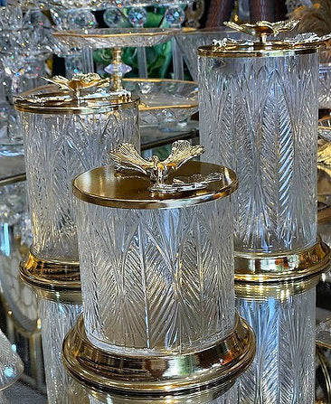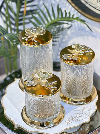 Bu özel kavanoz seti, doğanın zarafetini ve lüksün ışıltısını bir araya getiriyor. Her bir kavanoz yaprak motifleriyle süslenmiş, camın şeffaflığıyla modern bir görünüm kazanmıştır. Bu benzersiz tasarım, hem dekoratif bir obje olarak hem de işlevsel bir saklama çözümü olarak kullanılmasını sağlar.