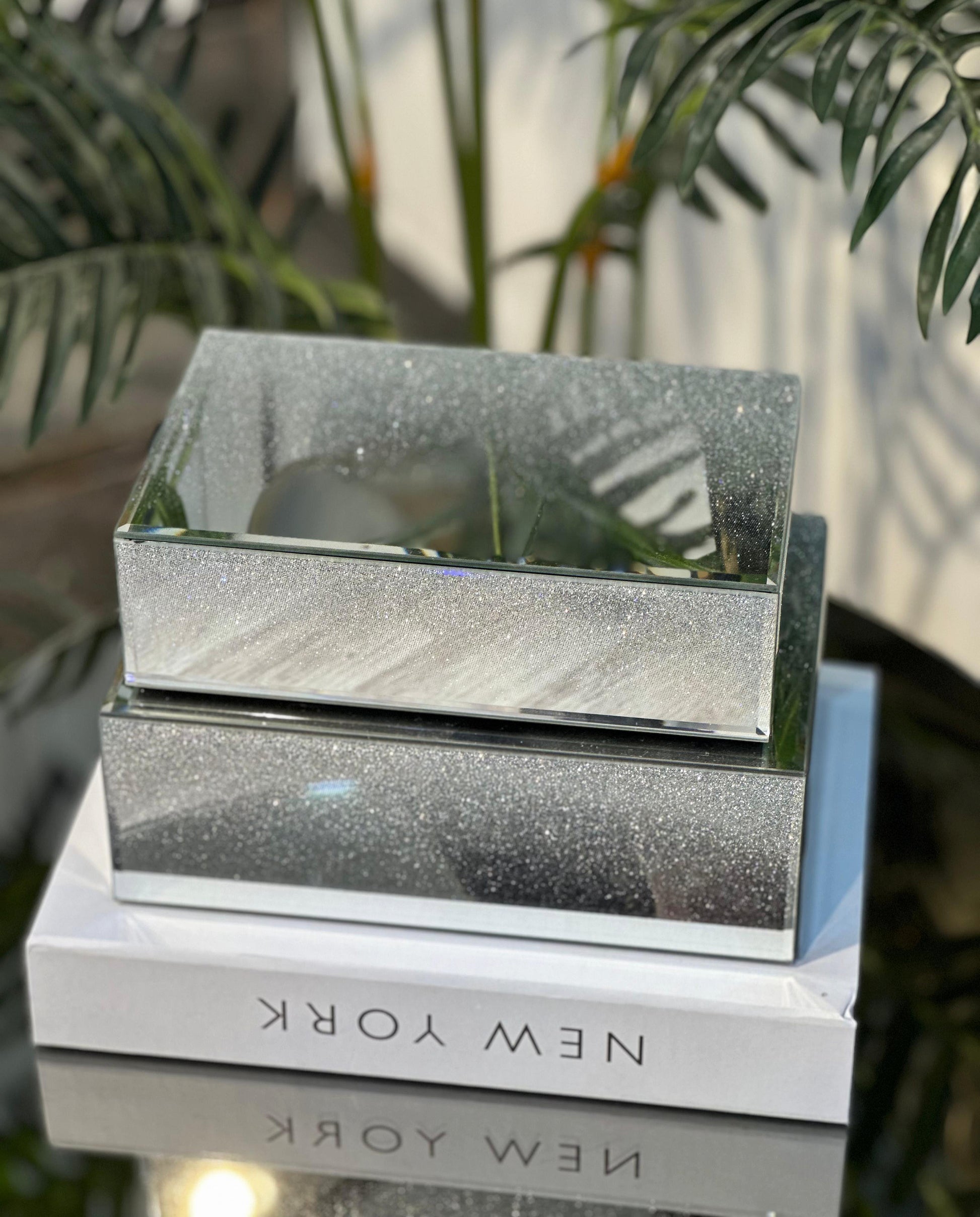 Aynalı ve Simli Cam Kutu (Tekli) - Işıltılı ve Şık Saklama Çözümü
