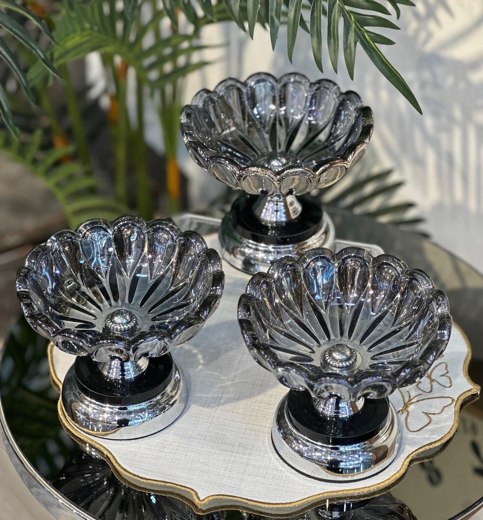 Sofralarınıza hem şıklık katacak hem de tatlı ikramlarınızı zarif bir şekilde sunmanızı sağlayacak bir obje arıyorsanız, bu kristal detaylı ayaklı şekerlik tam size göre.