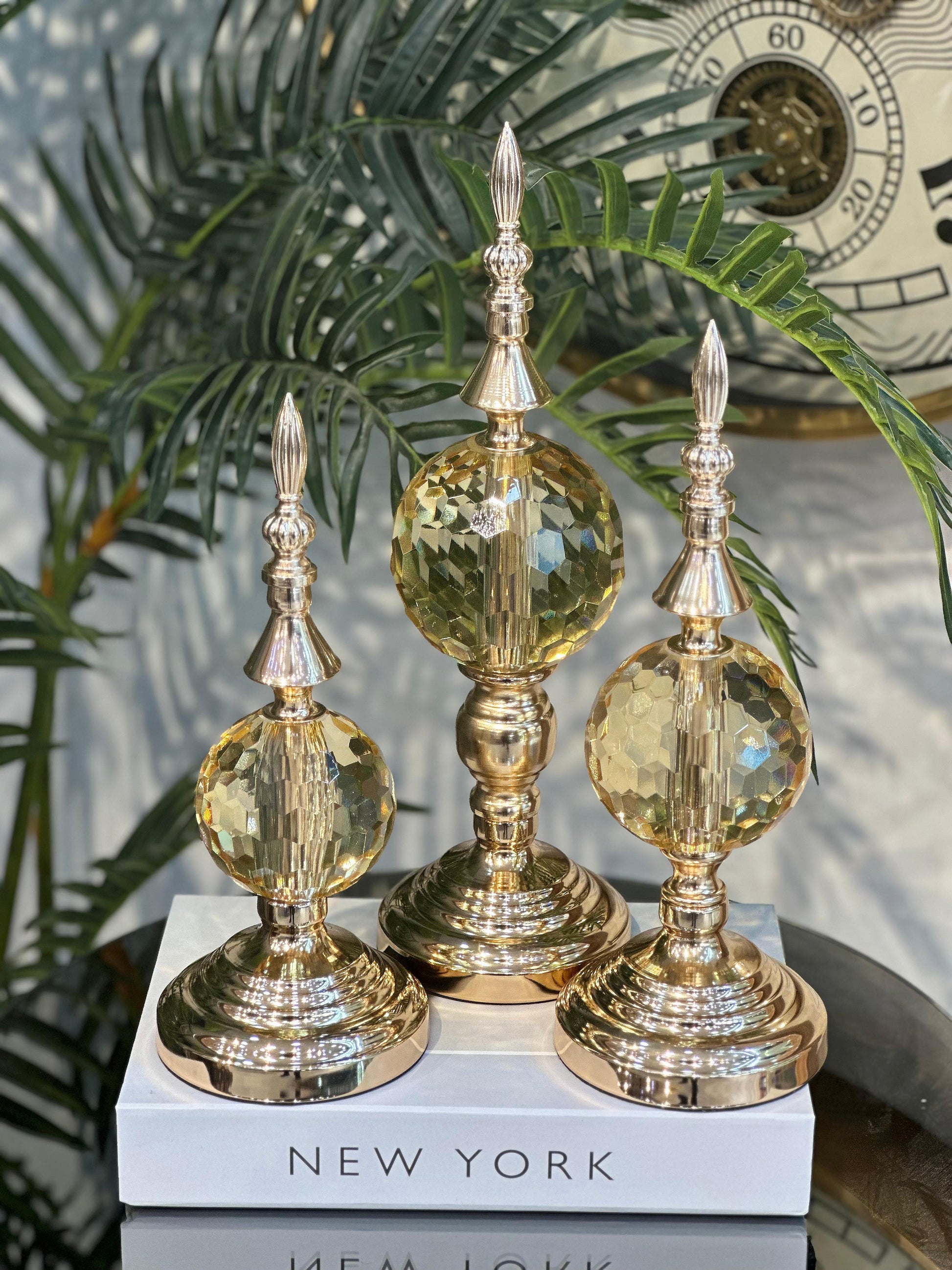 Bu zarif Bal Rengi Kristal Küre Dekoratif Obje Seti ile yaşam alanlarınıza sıcaklık, zarafet ve ışıltı katın!