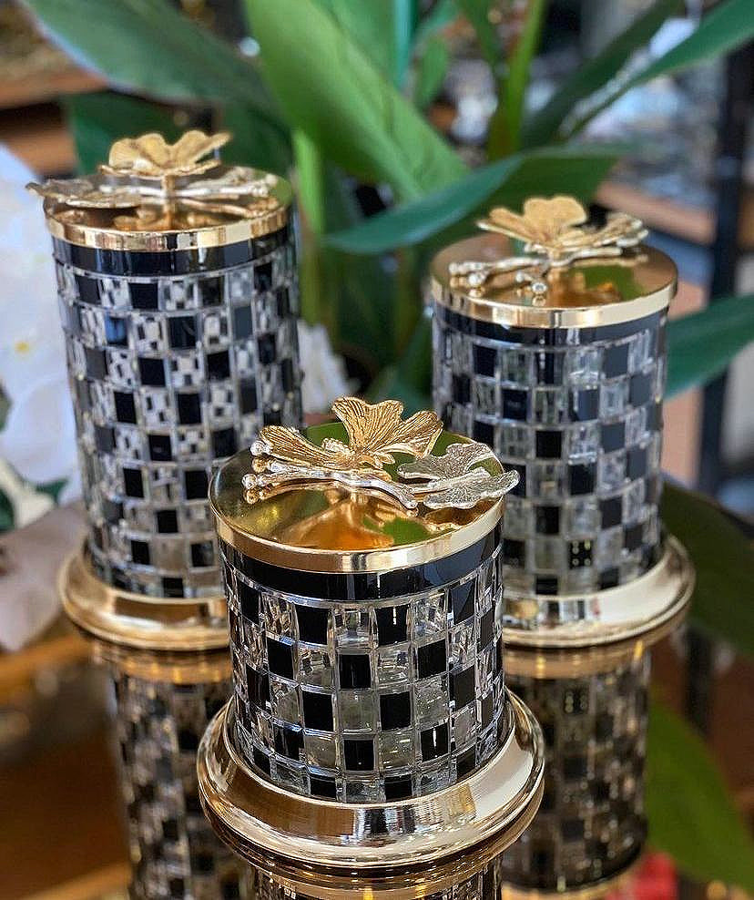 Bu özel kavanoz seti, adını geleneksel dama oyununun zarafetinden ve lüksünden alıyor. Her bir kavanoz, dama deseninin modern bir yorumunu yansıtan siyah ve şeffaf karelerle süslenmiş, altın rengi detaylarla zenginleştirilmiştir. Bu benzersiz tasarım, hem dekoratif bir obje olarak hem de işlevsel bir saklama çözümü olarak kullanılmasını sağlar.
