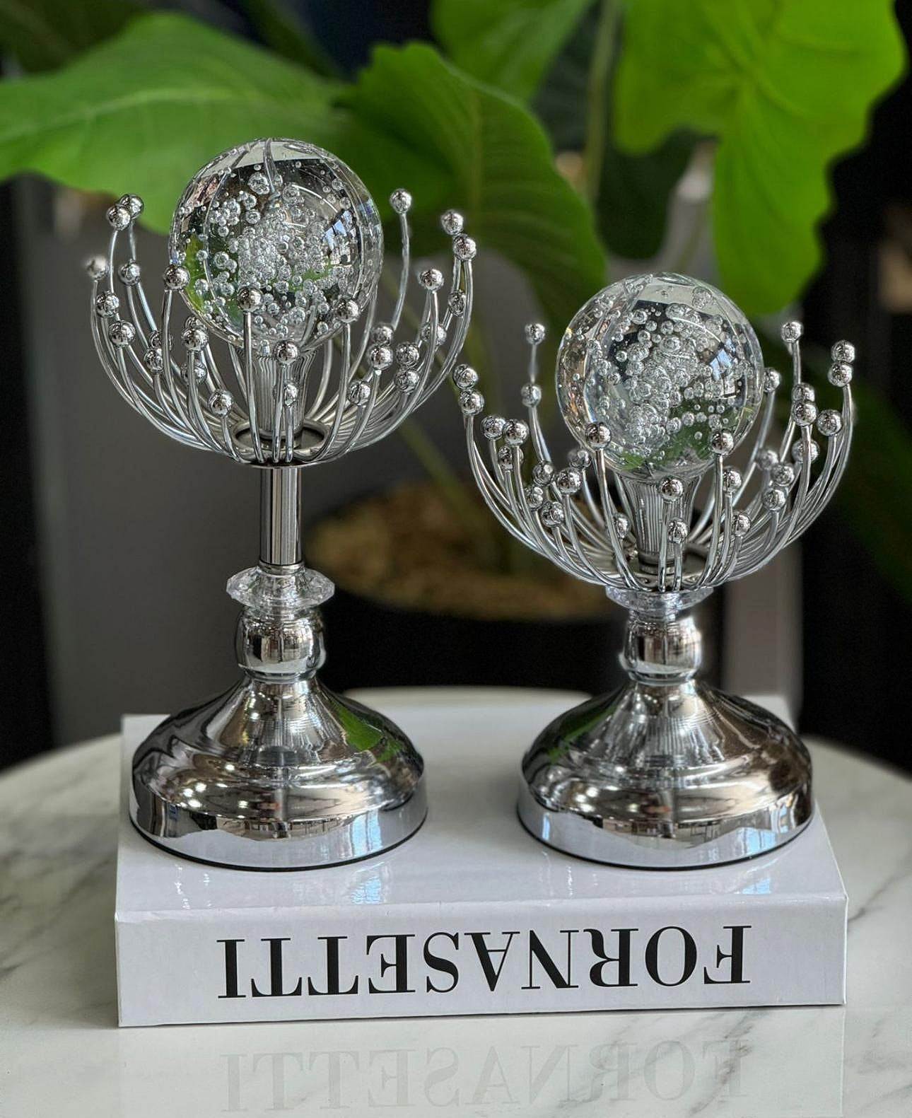 2'li Ahtapot Küre Gümüş Dekoratif Obje Seti