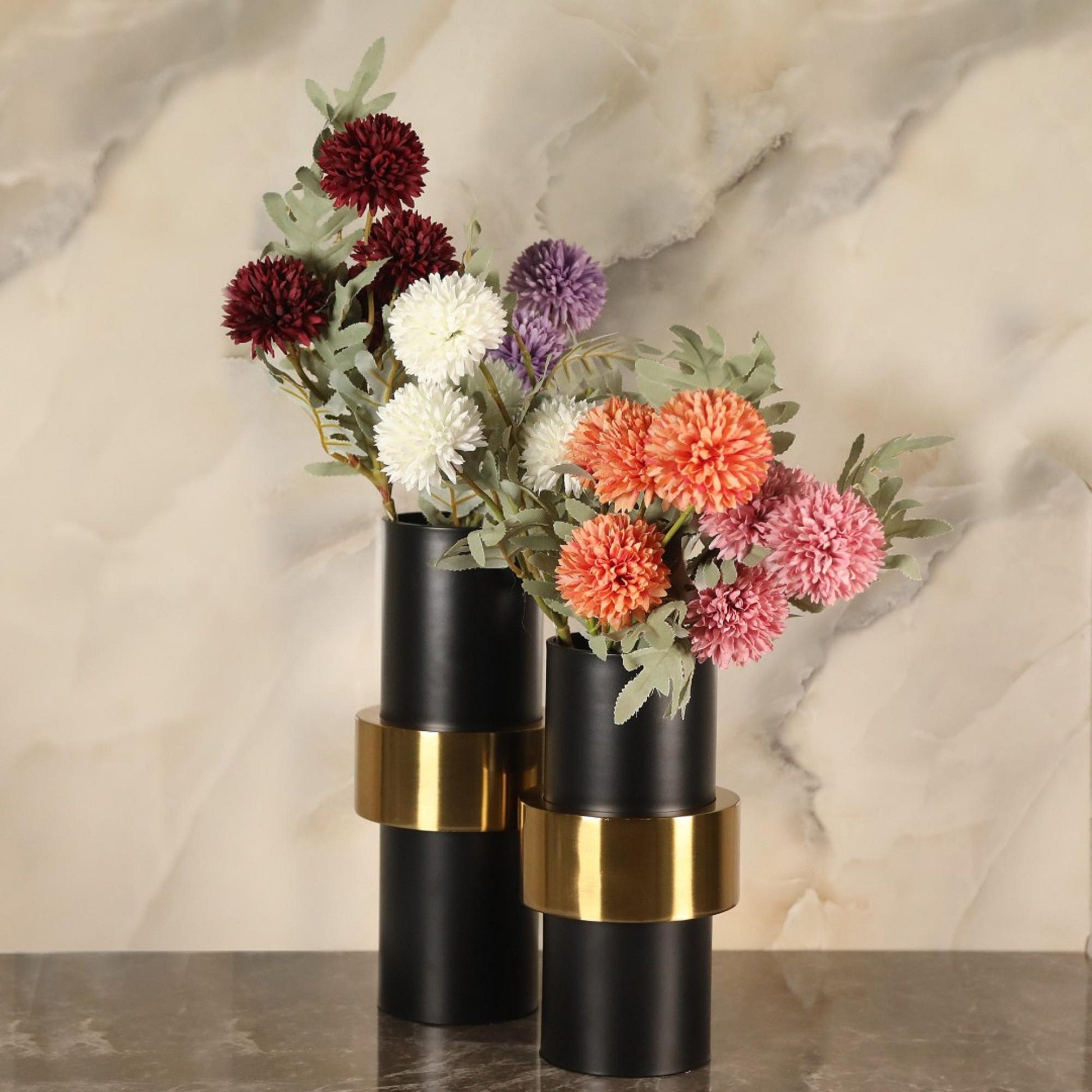 Siz de mekanlarınıza modern bir dokunuş katmak ve çiçeklerinizi şık bir şekilde sergilemek istiyorsanız, Siyah ve Altın Detaylı Vazo Seti'ni hemen edinin!