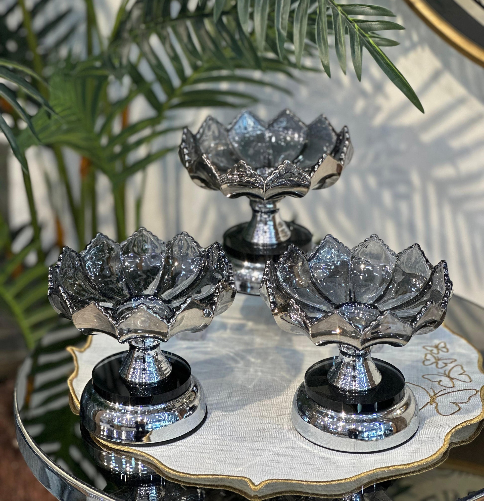 Sofralarınıza hem şıklık katacak hem de tatlı ikramlarınızı zarif bir şekilde sunmanızı sağlayacak bir obje arıyorsanız, bu kristal detaylı ayaklı şekerlik tam size göre.