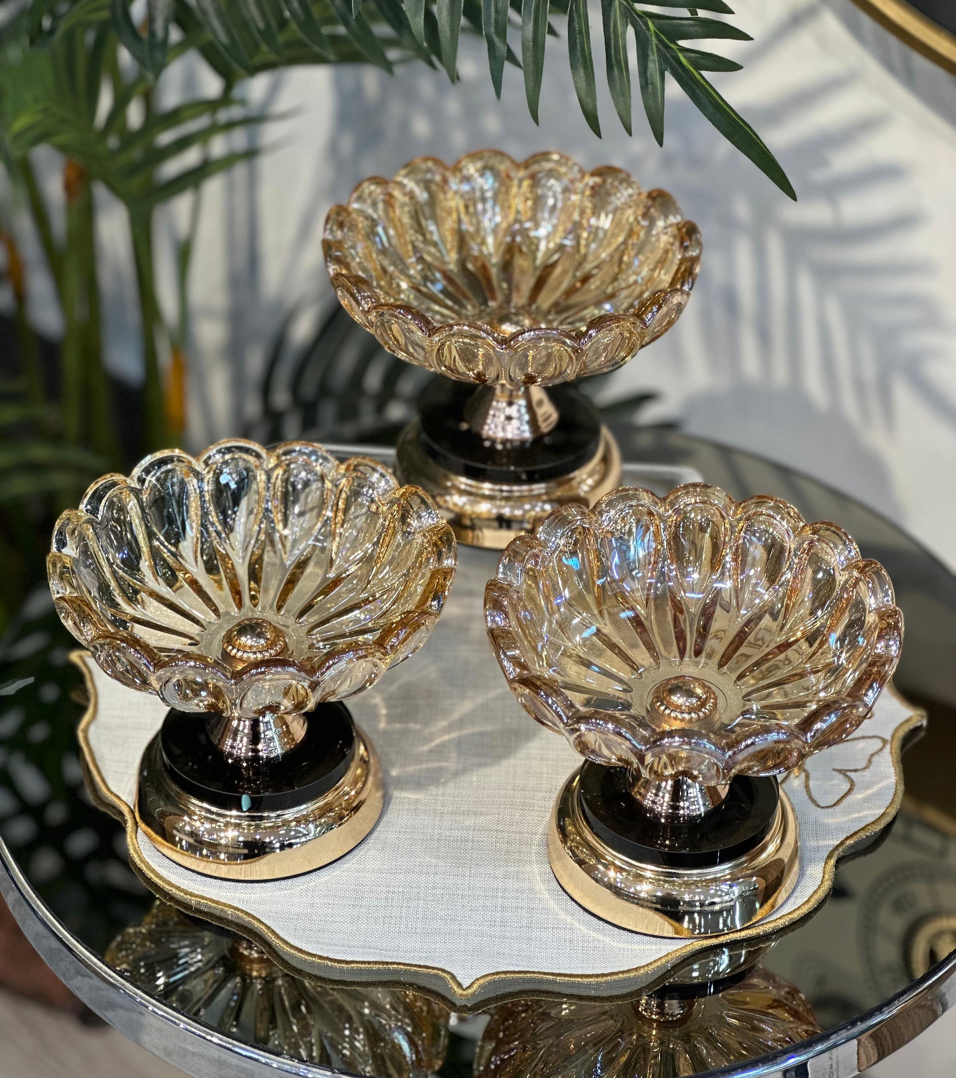 Sofralarınıza hem şıklık katacak hem de tatlı ikramlarınızı zarif bir şekilde sunmanızı sağlayacak bir obje arıyorsanız, bu kristal detaylı ayaklı şekerlik tam size göre.