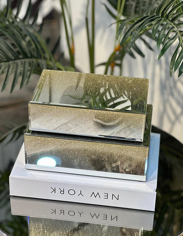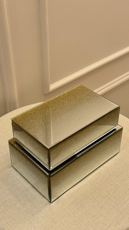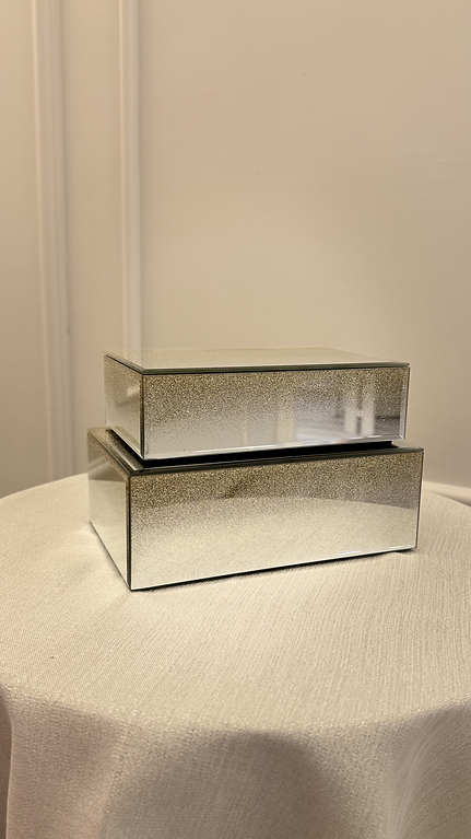 Aynalı ve Simli Cam Kutu (Tekli) - Işıltılı ve Şık Saklama Çözümü