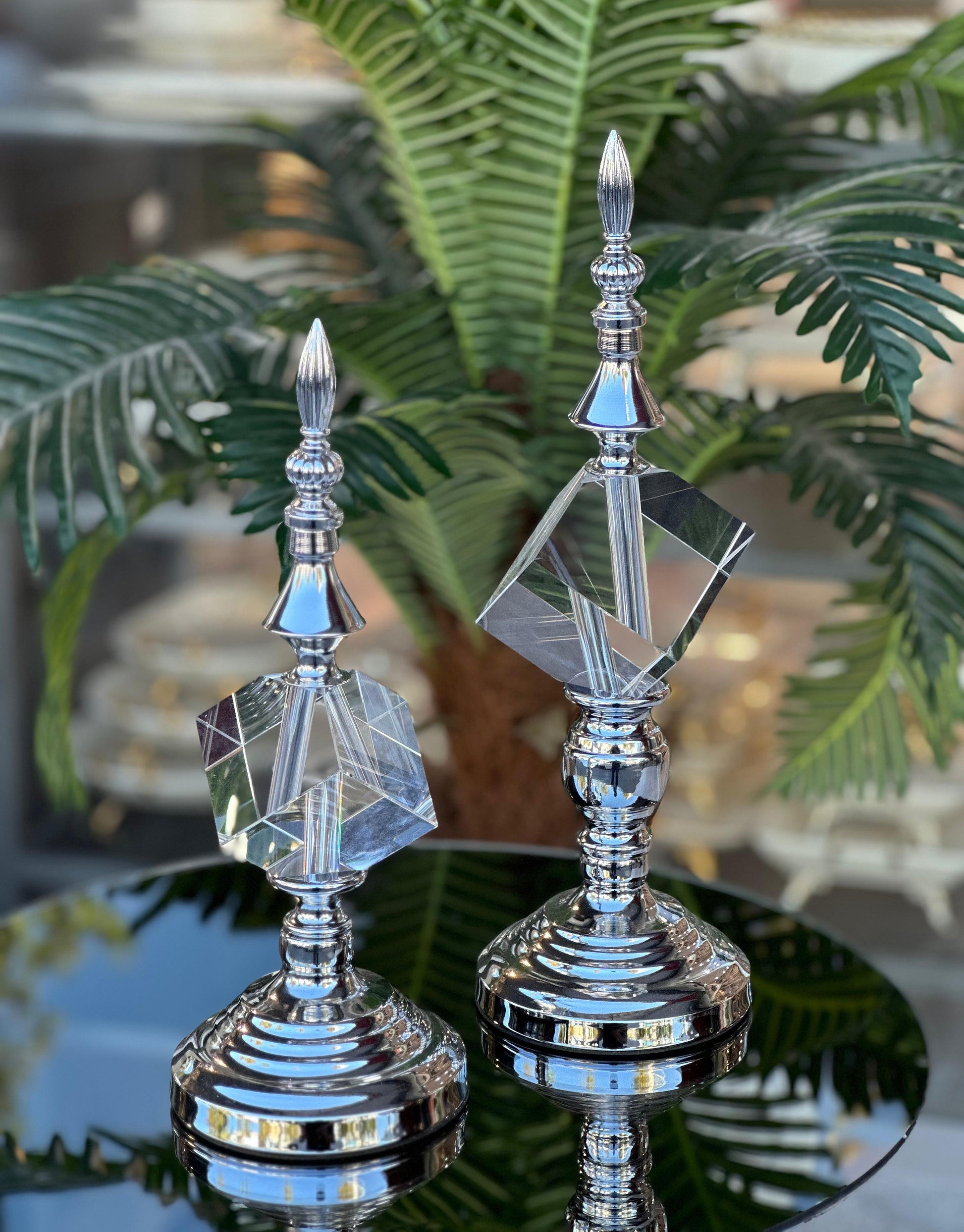 Kristal Küp 2'li Dekoratif Obje Seti Gümüş