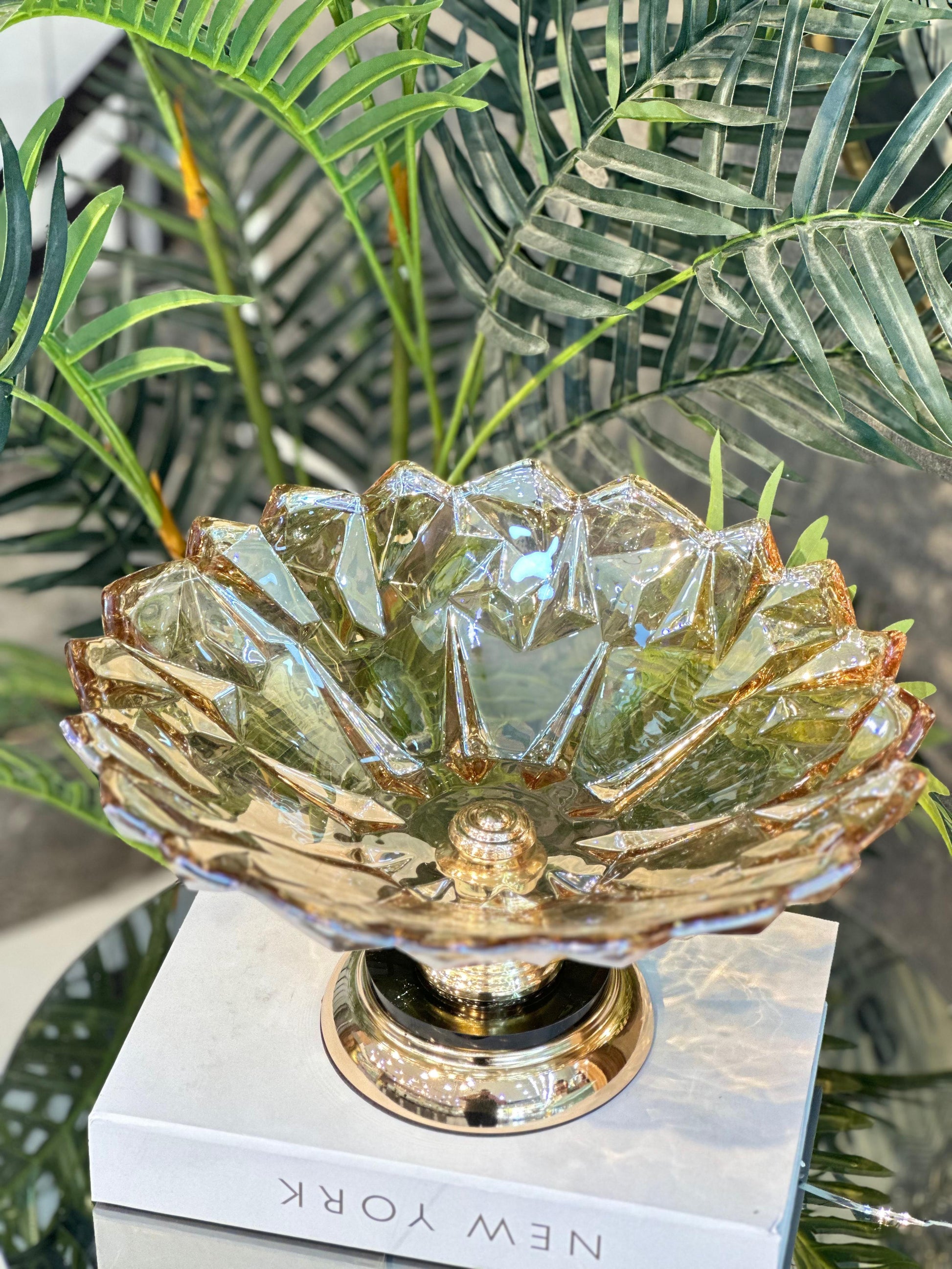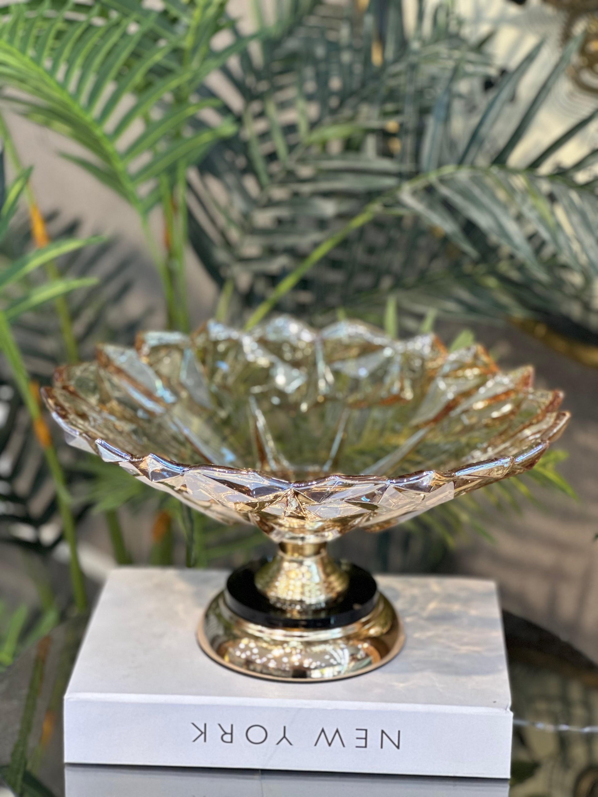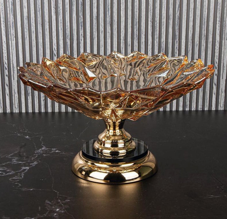 Kristal Kesim Cam Ayaklı Meyvelik Bal Rengi Büyük Boy