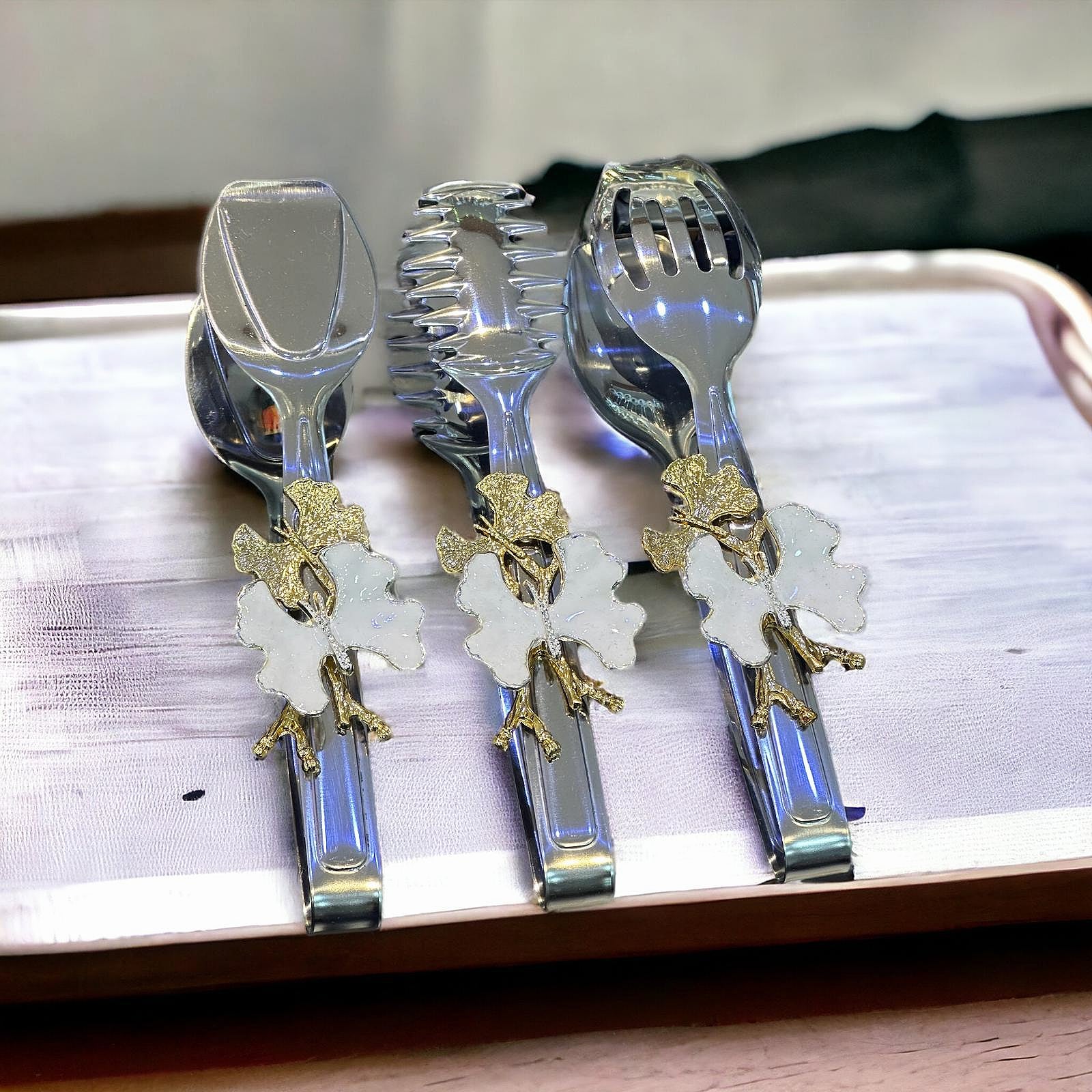 Bu kelebek detaylı 3'lü gümüş maşa seti ile sofralarınıza hem şıklık hem de zarafet katın!