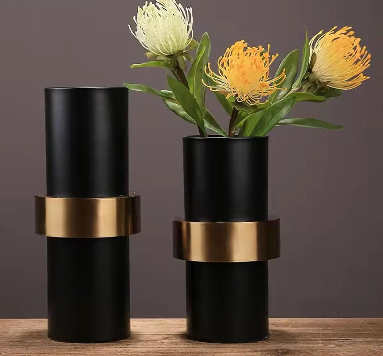 - Modern Tasarım: Siyah mat yüzey ve altın renkli metal detaylar, vazoya çağdaş bir görünüm kazandırıyor.