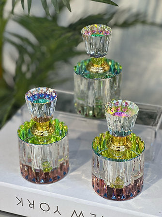 Bu göz alıcı kristal parfüm şişeleri, parfüm koleksiyonunuza lüks ve sofistike bir dokunuş katacak. Işıltılı kristal tasarımı ve zarif detaylarıyla bu şişeler, sadece parfümünüzü saklamakla kalmayacak, aynı zamanda odanızın dekorasyonuna da değer katacak.