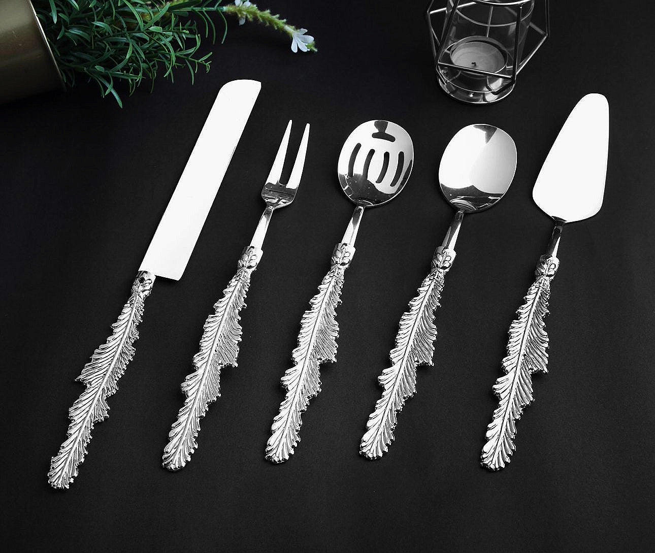 - Gümüşün asil parlaklığı ve zarif tüy detayları, sofranızın atmosferini canlandırarak pozitif bir enerji yaratır.