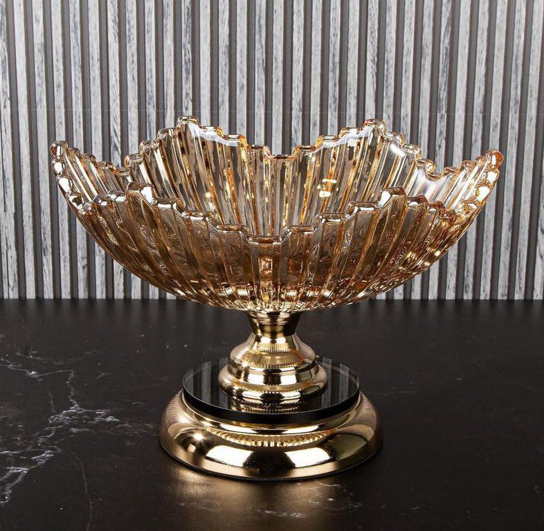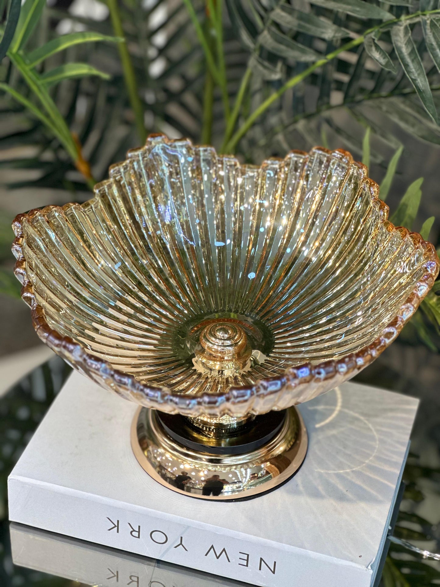 Kristal Kesim Cam Ayaklı Meyvelik Bal Rengi