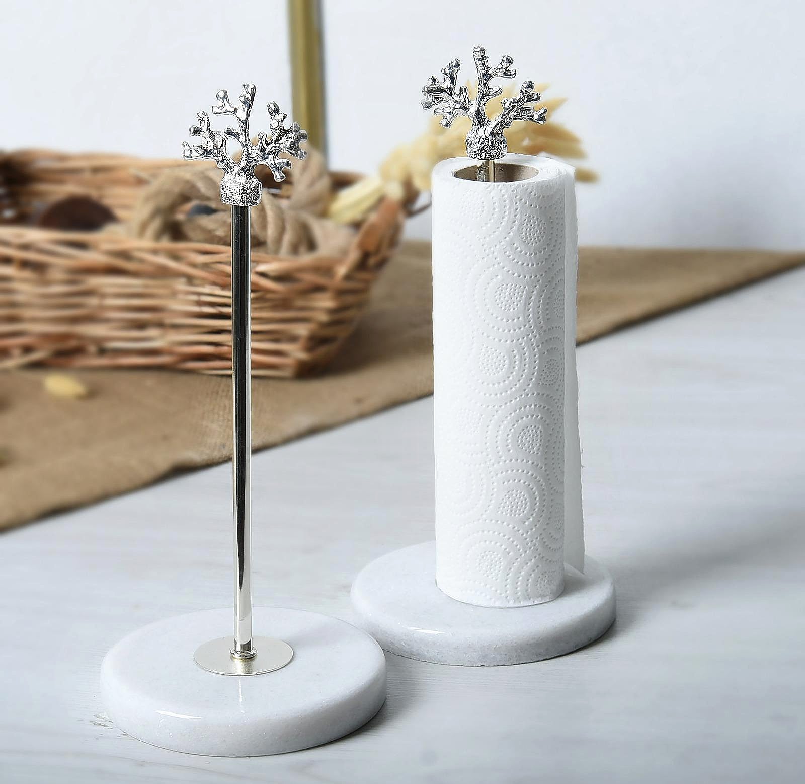 Dal Detaylı Mermer Rulo Gümüş Havluluk