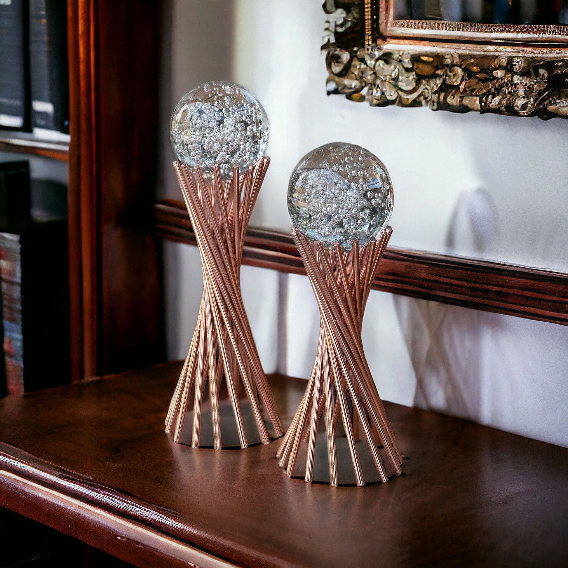Premium 2'li Metal Ayaklı Cam Küre Seti - Zarafet ve Işıltının Buluştuğu Nokta