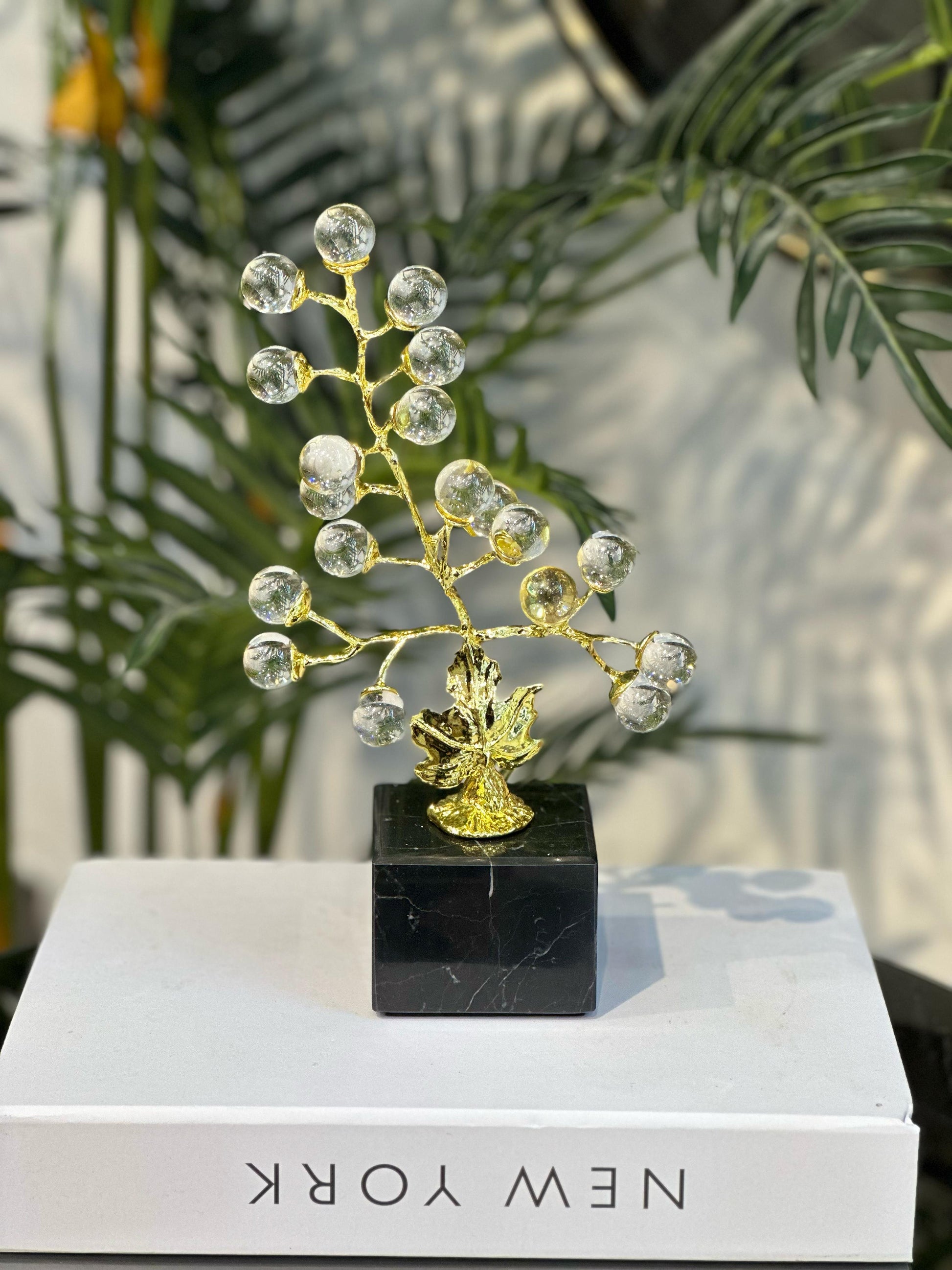 - Altın Detaylar: Altın rengi sap ve yapraklar, kristallerin ışıltısını daha da vurgulayarak, ürüne asil bir görünüm kazandırıyor.