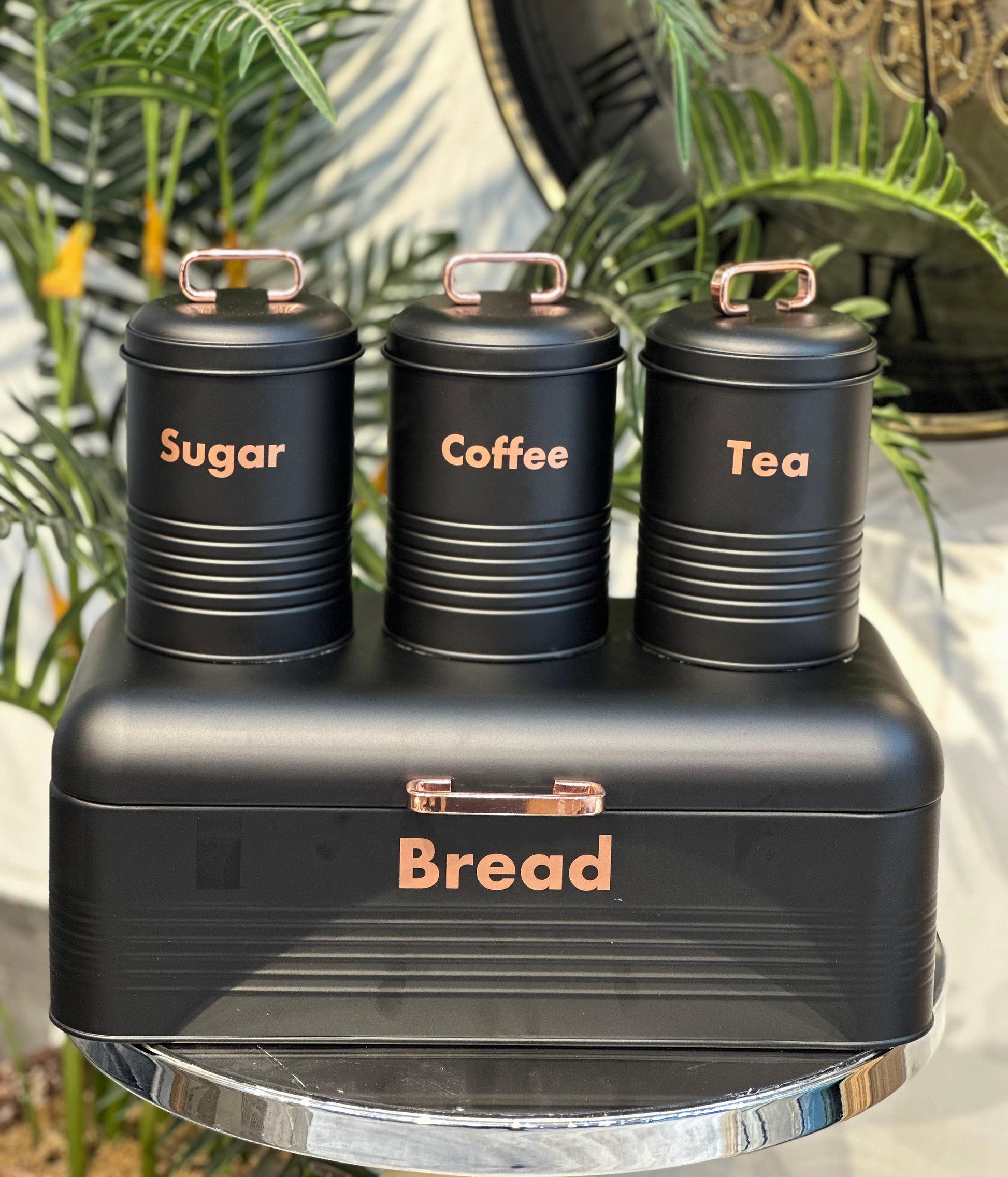 Bu siyah metal ekmeklik ve 3'lü saklama kabı seti ile mutfaklarınıza hem şıklık hem de işlevsellik katın!