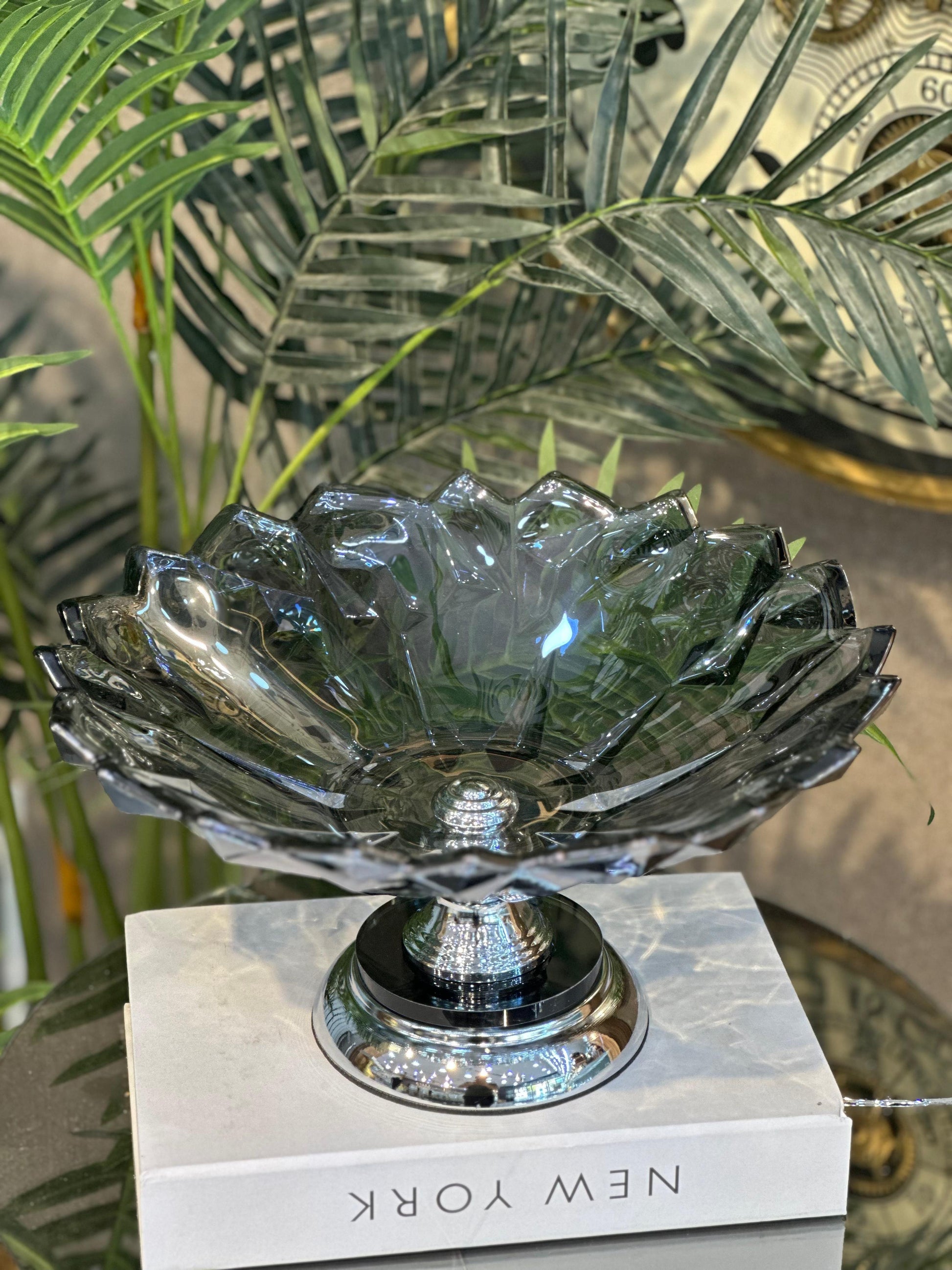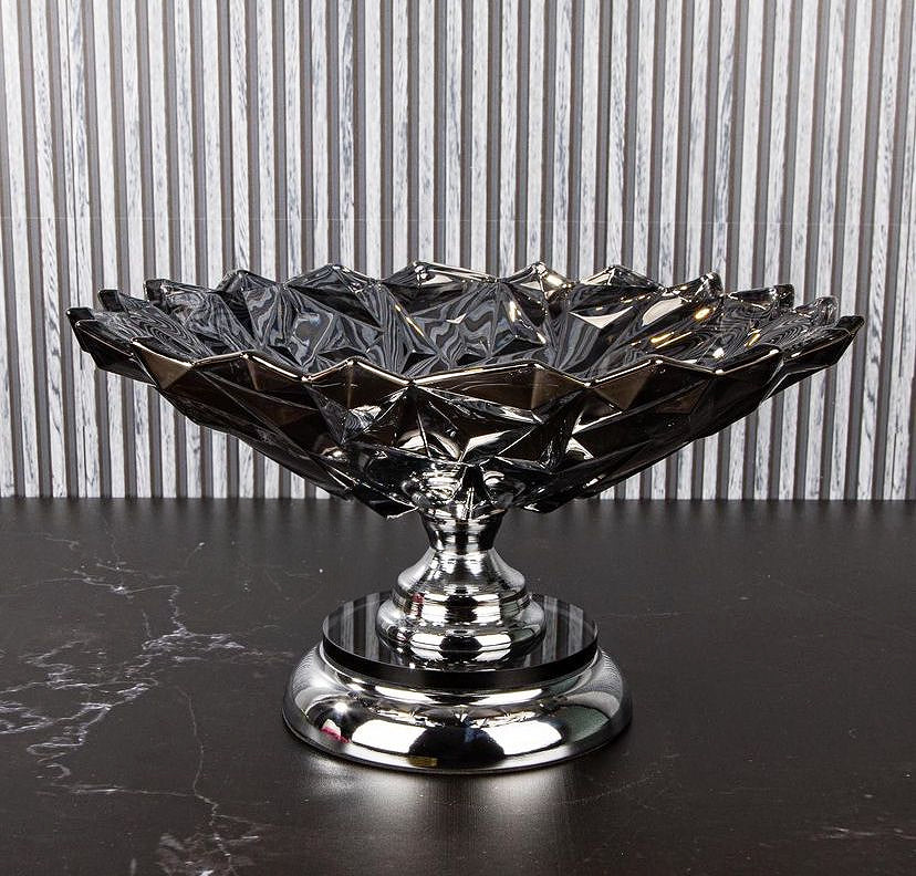 Kristal Kesim Cam Ayaklı Meyvelik Duman Rengi